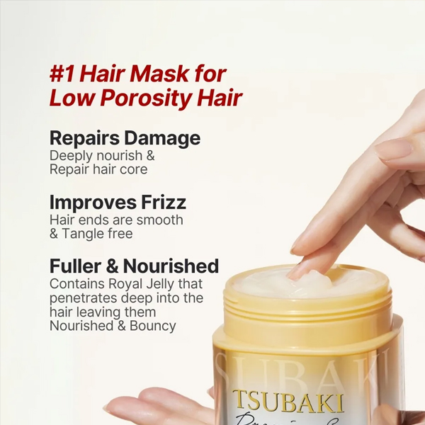 SHISEIDO TSUBAKI Premium Repair Mask. A hair mask that fills up damaged hair tips with beauty ingredients. It creates finest hair quality similar to post beauty salon treatment. It is able to widen and loosen the cuticles to make path for the beauty ingredients to penetrate and nurture your hair to the tips. Deep infiltration of rich beauty ingredients with excellent damage repair and moisturizing effect. How to use: after shampoo and conditioner, lightly drain the moisture of your hair and apply an appropriate amount onto the whole hair. Rinse thoroughly afterwards (even when you rinse it immediately, it has sufficient effect on your hair). With its high treatment effect, it is recommended only to use it 1 to 2 times a week.