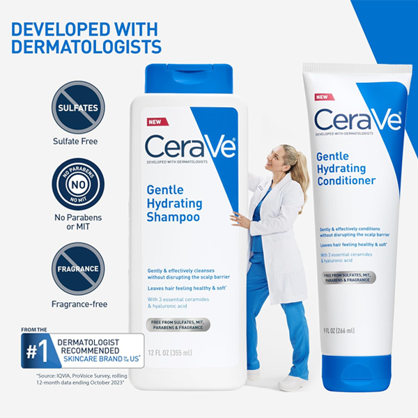 CeraVe Gentle Hydrating Shampoo is a dermatologist-developed formula designed to gently cleanse while maintaining the scalp’s natural moisture barrier. Powered by essential ceramides and hyaluronic acid, this shampoo removes dirt, oil, and buildup without stripping hair of its natural hydration.