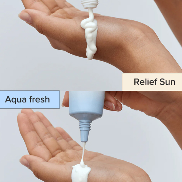 For those who loved our Relief Sun but found it a bit too rich, introducing Relief Sun Aqua-fresh. This new formula is crafted with rice seed water and panthenol to deliver refreshing hydration while safeguarding your skin from harmful UV rays and environmental stressors. Designed for those who prefer a sheer, non-greasy finish, Relief Sun Aqua-fresh provides the same benefits as the original Relief Sun—no white cast, no stickiness—plus enhanced hydration and a quick-absorbing, dewy finish.