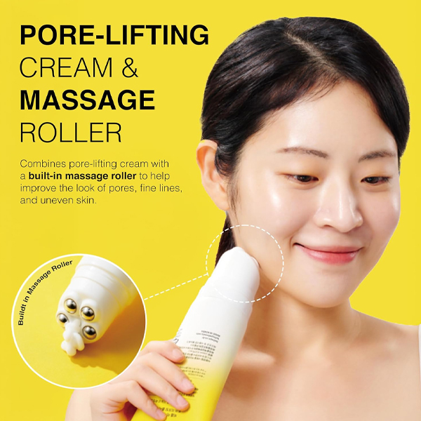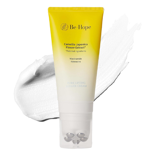 The Be-Hope Vegan Pore Lifting Roller Cream is a K-beauty product that combines an intensive nourishing cream with a built-in gua sha roller for massaging the skin during application. It is designed to tighten pores, improve elasticity, reduce puffiness, and visibly lift facial contours like the nasolabial folds.