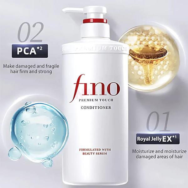The Shiseido Fino Premium Touch Conditioner 550ml is a Japanese hair treatment designed to deeply nourish and repair dry, damaged, and chemically processed hair. It is formulated with moisturizing and strengthening ingredients that help restore moisture, improve elasticity, and restore shine without weighing hair down.