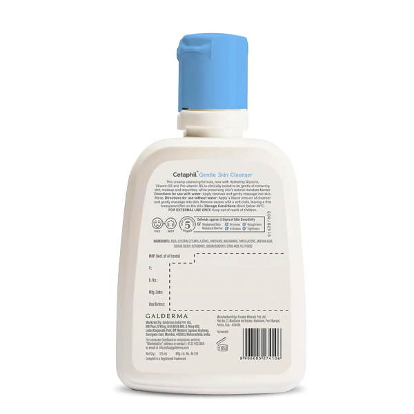 Cetaphil Gentle Skin Cleanser (125ml) is a mild, creamy face wash for dry to normal, sensitive skin, designed to remove dirt, makeup, and impurities without stripping moisture, featuring ingredients like niacinamide & panthenol to soothe, hydrate, and repair the skin's barrier, defending against dryness, irritation, and roughness. It's hypoallergenic, fragrance-free, paraben-free, and sulfate-free, making it a trusted dermatologist-recommended choice for daily use to maintain soft, hydrated skin.
